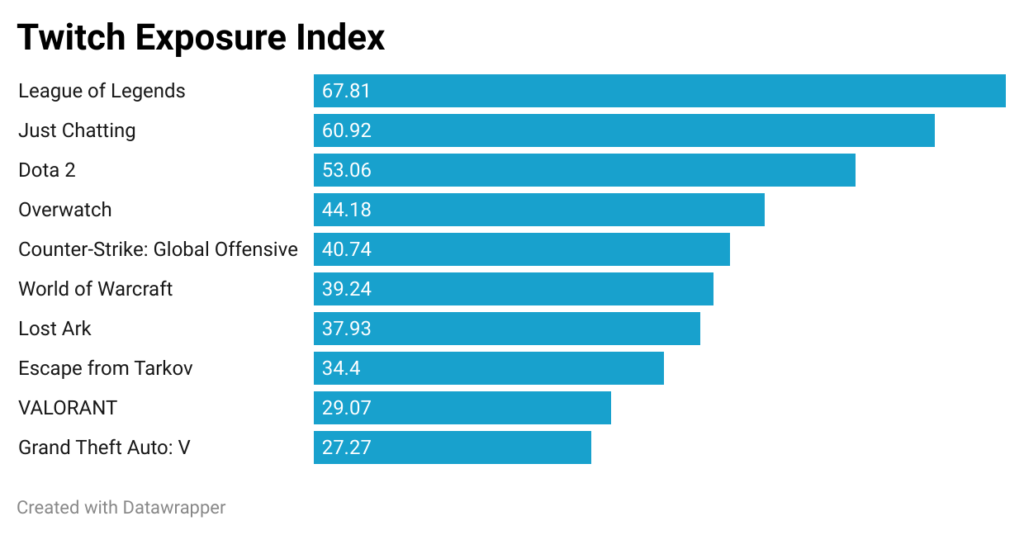 - Just Chatting comes second and is the game with the highest watch time over the last year