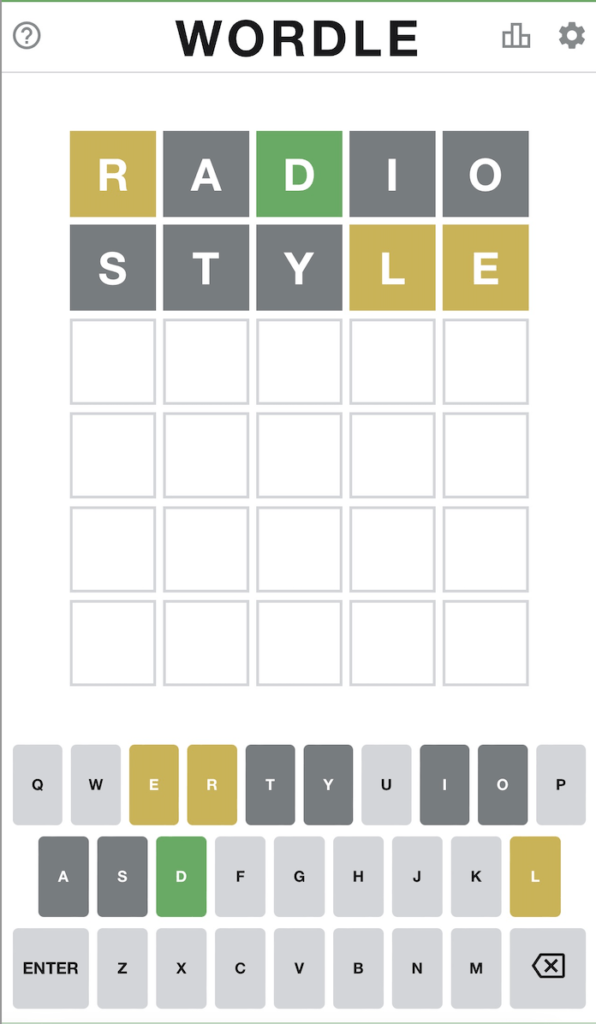 If you have the right letter in the right spot, it appears green. A correct letter in the wrong spot appears yellow. A letter that isn’t in the word in any spot appears gray.