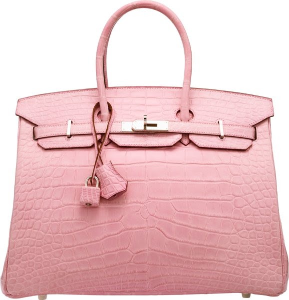 Thanks to celebrities like Victoria Beckham and Kim Kardashian, the Hermes Birkin has long been the unofficial “it” bag of the stars. A Hermes 35 cm Matte Pink 5P Alligator Birkin Bag with Palladium Hardware is up for auction. How much is expected to go for? |
