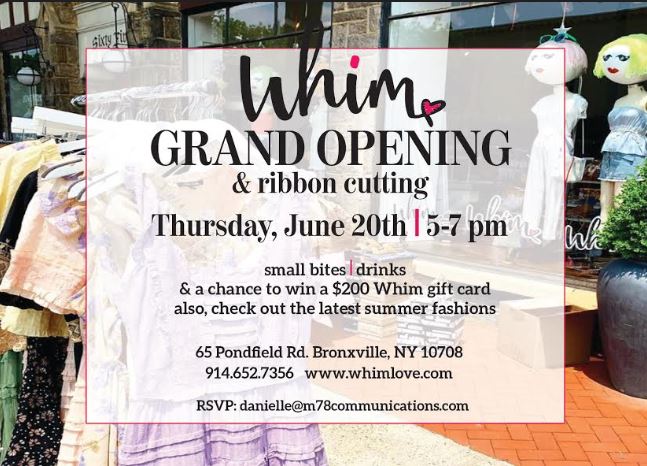 “We are so excited to have a second fashion oasis in Westchester and we look forward bringing fun, affordable fashion to Bronxville,” said owner Vivian Hoffman. “Bronxville is the perfect spot for Whim andwe’ve been humbled by the response from the local community.”