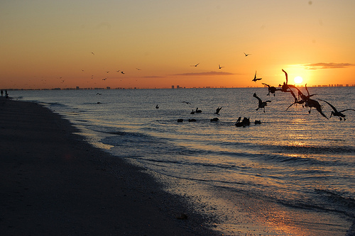 Sanibel’s unusual geography acts as sort of a shovel and gathers many of the seashells that the Gulf waters wash in from the Caribbean. Shell searchers often crowd the beaches during extreme low tide, hunching over and gazing at the sand in what has been nicknamed the “Sanibel Stoop.” Visitors often find up to 60 variety of shells, including conches, junonias, and cockle shells.